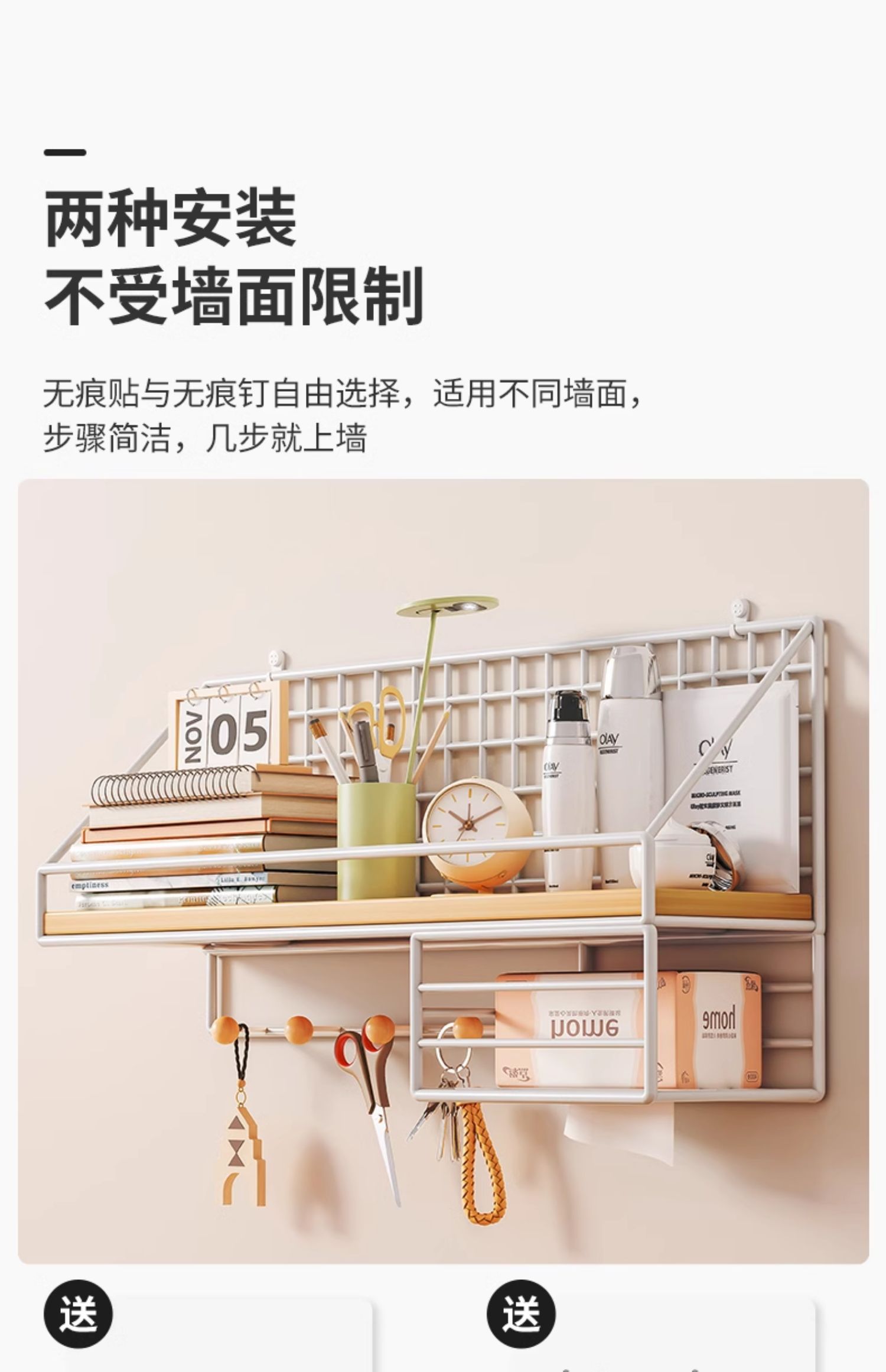 墙上置物架免打孔墙壁挂篮墙面床头床上学生宿舍好物零食收纳架