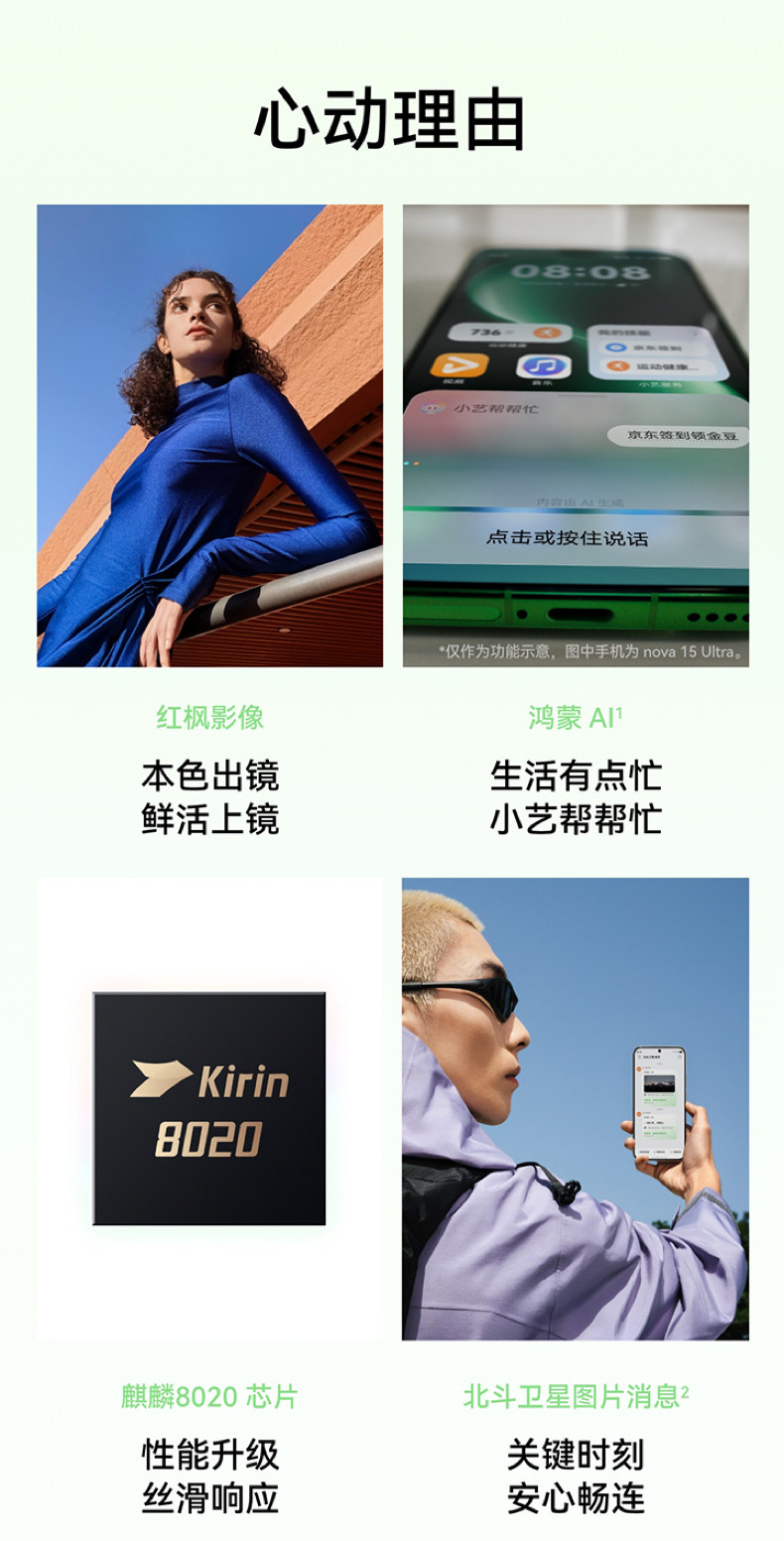 华为nova15 麒麟8020芯片 多焦段红枫影像 鸿蒙AI 华为直屏鸿蒙手机