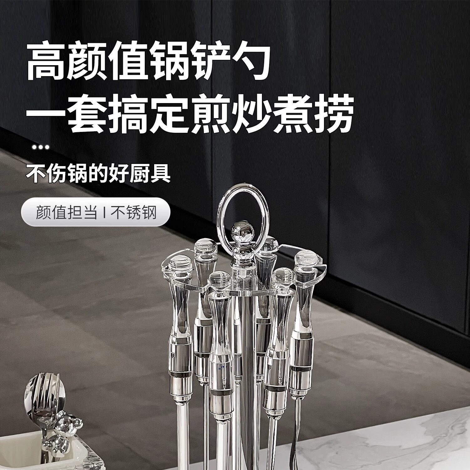 锅铲家用厨房炒菜铲子汤勺子不锈钢厨具套装高颜值漏勺铲勺